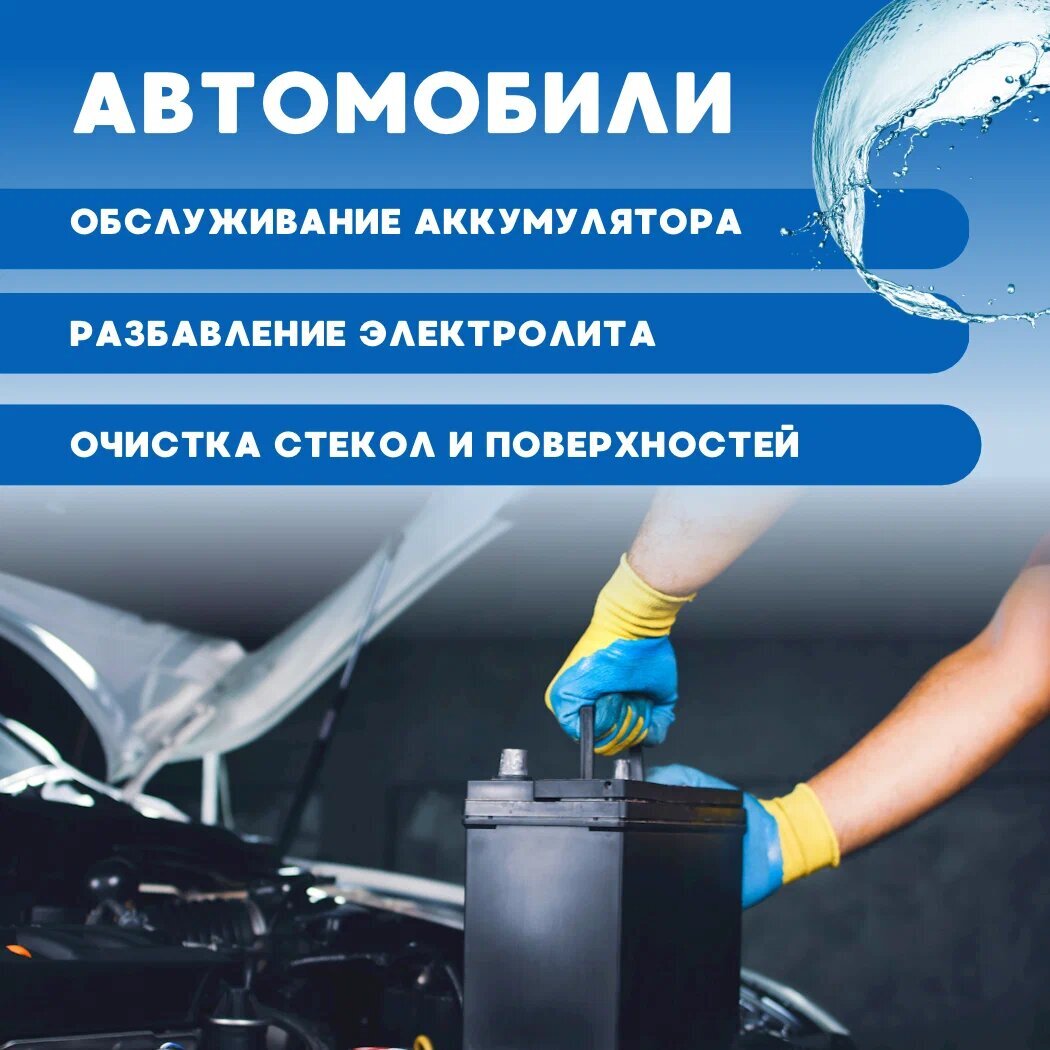 Качественная дистиллированная вода в удобной бутылке объемом 1 литр необходима для использования в самых разных сферах быта, а также незаменима для техники. Универсальное средство подойдет для увлажнения воздуха, заправки парогенератора, утюга и отпаривателя для белья, а также для заправки аккумуляторов и работы отопительных систем. В коллекции бренда представлены бутылки объемом 5 литров. Благодаря высокому качеству и плотности воды, ее можно использовать для очистки стекол, ингаляции, промывки растений, приготовления инъекций, мойки, глажки, уборки в доме и косметологии. Упаковка содержит чистую, прозрачную и очищенную воду, необходимую для оборудования и устройств, включая моющий робот - пылесос, радиаторы и стеклоомыватели, системы охлаждения и кондиционирования. В косметологии она используется для приготовления мицеллярной воды, жидкости для очищения линз. Это средство идеально для очистки стеклянных поверхностей, ухода за цветами. Водный раствор 1л можно использовать для очистки устройств и двигателей. Получите качественный дистиллированный концентрат для использования в бытовой технике и устройствах. Вода используется для создания средств для туалетных процедур. Также именно очищенную воду рекомендуется заливать в резервуары гладильного ручного прибора, используемого и для отпаривания, а также для охлаждающей установки. Она используется в качестве очистителя для промышленных аппаратов и установок, а также в качестве основы для реактивов. Нижний порог температуры при обычном хранении - +0.5°C
